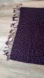 Elegant fringe scarf with a bold purple and black pattern. Adds a chic touch to any ensemble.