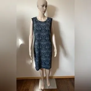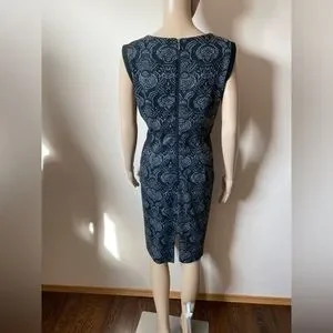 Black Sleeveless Dress with Jacquard Fabric. Fully Lined. Thick Garment. Back Zip. Back Slit