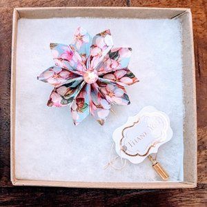 Material: High Quality Origami Paper, brushed gold/silver metal pin, acrylic gem