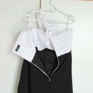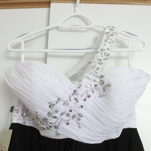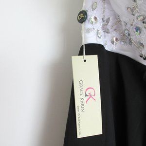 Grace Karin B&W Long Gown Rhinestones One Strap NYE Size 12
