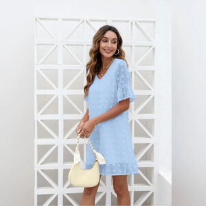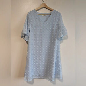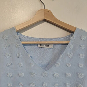 Grace Karin Belle Sleeves Blue Dotted Sun Dress Size Small