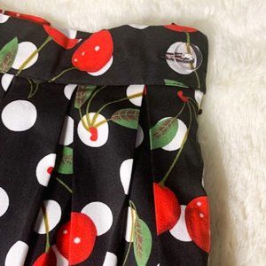 Grace Karin Retro Pin Up Look Pleated High Waist Skirt. Super cute cherry and polka dot print. Size S. Side zip with transparent button enclosure. W/ pockets.
