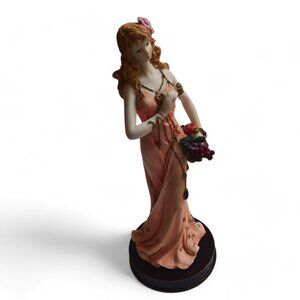 Graceful Lady with Flowers Resin Figurine on Wood Base Vintage Giovanni…
