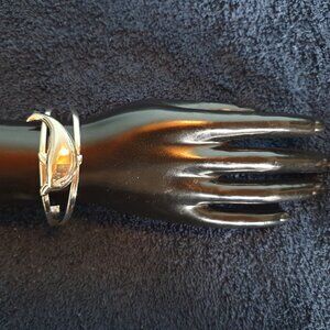 Make a splash with this stunning vintage sterling silver dolphin cuff bracelet, a beautifully crafted tribute to grace, freedom, and oceanic charm.