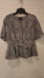 Chic Gracia blouse with houndstooth pattern. Features a stylish peplum design. Perfect for any occasion.