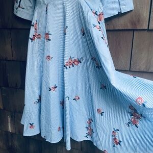 Gracia Women's Striped and Embroidered Flowers Midi Shirt Dress Size Small