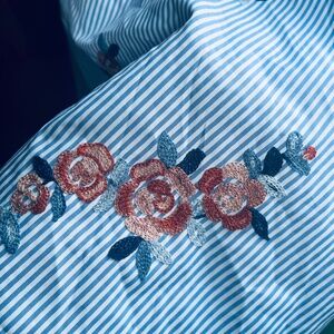 Elevate your wardrobe with the Gracia Women's Striped and Embroidered Flowers Midi Shirt Dress. Designed for versatility, this piece is ideal for a range of occasions, whether you're headed to the office, enjoying a casual day out, or attending a cocktail party. The knee-length cut, fit and flare style, and three-quarter sleeves offer a flattering silhouette that transitions seamlessly through fall, spring, and summer.