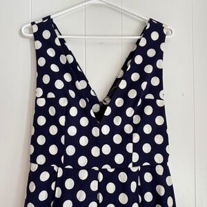 Gracia fit and flare navy and white polka dot dress crinoline skirt lined size L