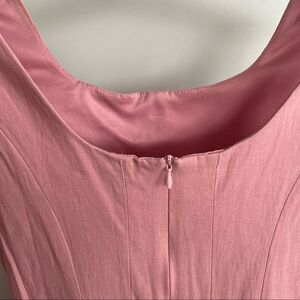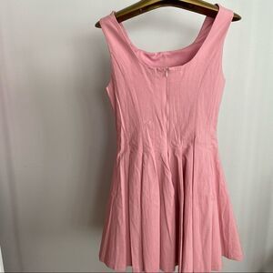 Pink, mini, pleated, crinoline detail at bottom, lined, sleeveless, scoop neck, EUC, neck to hem 28”, waist 13.5”, armpit to armpit 15”.