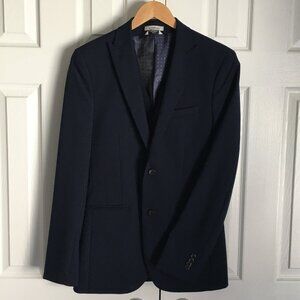 Men's Navy Blue suit with vest (the suit on the right 1st picture is the color as seen outside:2nd pic is suit on the left)