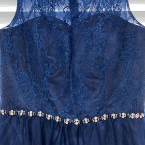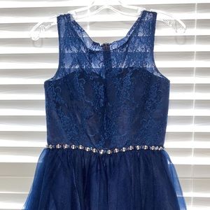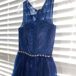 Beautiful grad/fancy dress perfect for any occasion! Brand new condition, only worn once. Navy blue with lace and sparkly belt. Size small.
