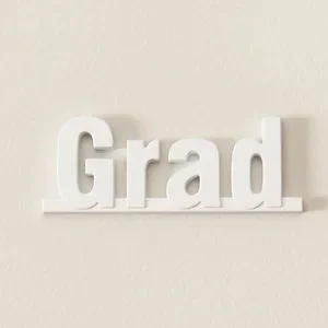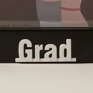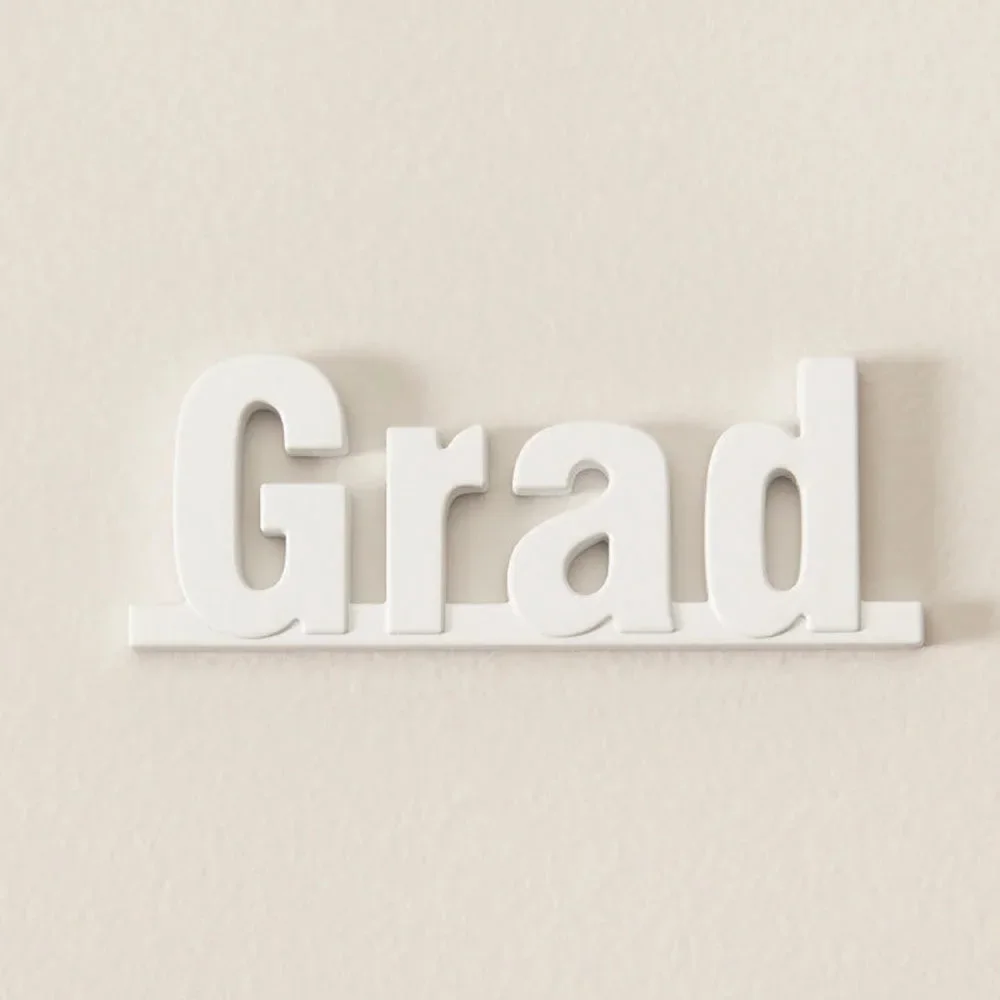 Share and display photos or artwork in a frame that means something to you. OUI’s magnetized Grad sentiment has a white finish and pairs with OUI’s Expression frames. Mix and match it with other words in the Sentiment collection to create a frame that’s speaks to you. 1.2” x 3.6” x 1.6”. Glass, metal. Wipe with a soft damp cloth.