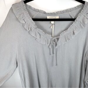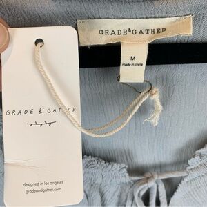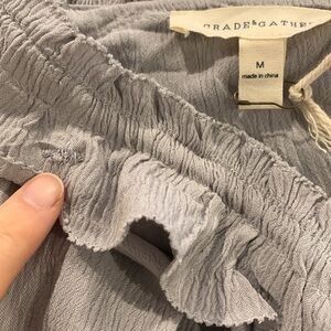 Grade & Gather sz M NWOT Light Stone Grey Boho Gauzy Ruffle Peasant Blouse