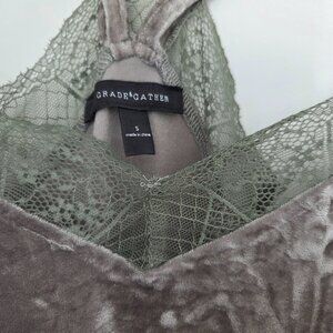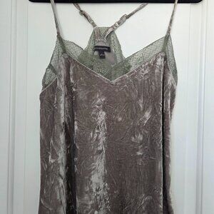 Cute velvet like cami ina a soft grey. Lace detail and adjustable straps. Size S