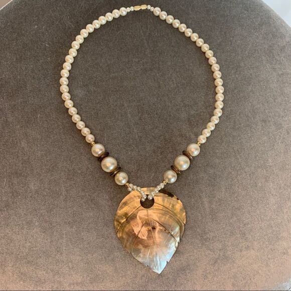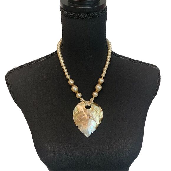 Graduating Faux pearl mother of pearl seashell leaf pendant necklace