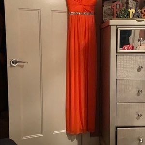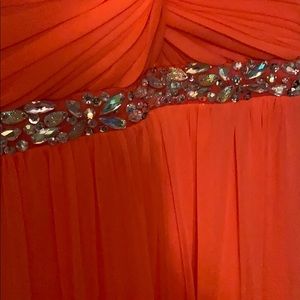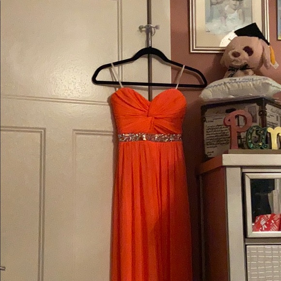 Graduation Dress. Coral pink with silver sequenced jules. Flow fit- size 0. Never worn. In really good condition. Bright colour.