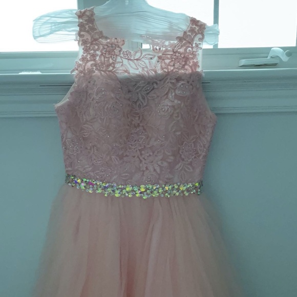 This is a graduation dress bought from Marla's fashion in Toronto, Ontario. It was only worn once and is in perfect condition. Cute pink colour and comfy.