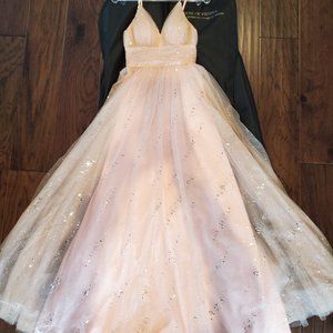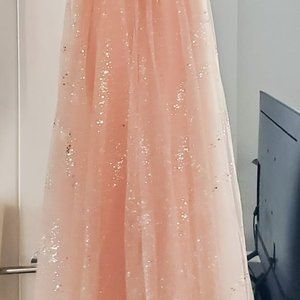 A beautiful peachy pink long grad gown. Worn only once. Size small.