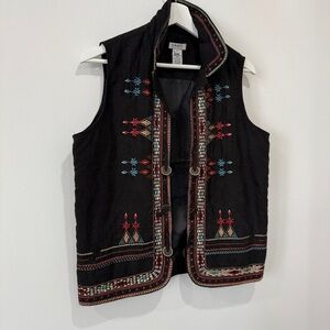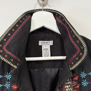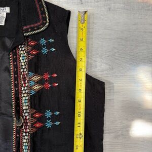 Graff Southwestern Style Black Vest with Colorful Embroidery Size M
