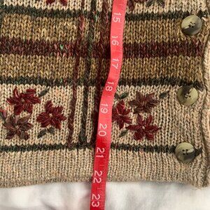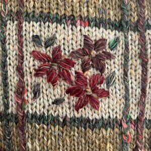 Vintage style knit Christmas Vest, Neutral colors, stitched poinsettias with green leaves. Ugly Christmas sweater? or Vintage preppy look?