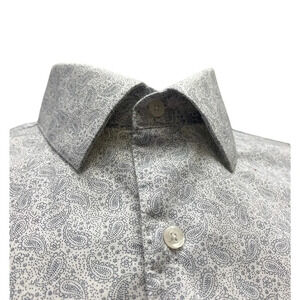 Grafton Button Down Long Sleeve Paisley Pattern Light Grey/Blue Shirt Size Large 34/35