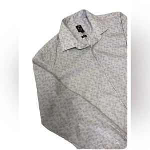 Grafton Button Down Long Sleeve Paisley Pattern Light Grey/Blue Shirt Size Large