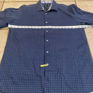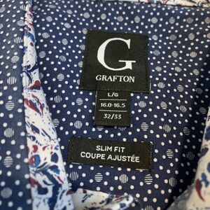 Grafton Men's Slim Fit Dress Shirt - Blue Micro Dot with Paisley Contrast- L