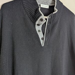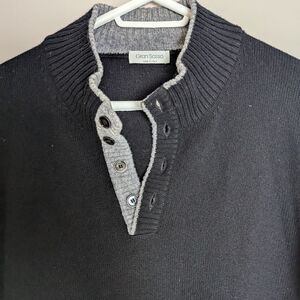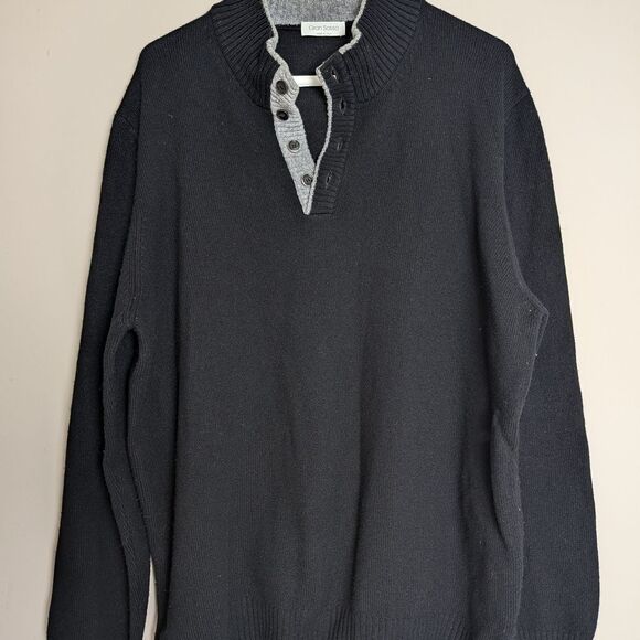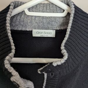 Gran Sasso Italy 100% Wool Sweater XL Black Gray 1/4 Button Front High Quality