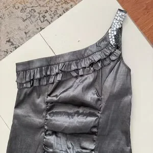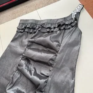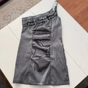 Granada Metallic Silver One-Shoulder Ruched Party Dress Rhinestone Strap Formal
