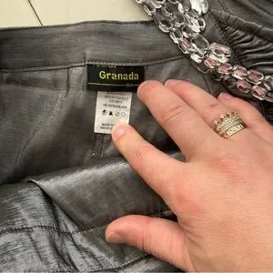 Turn heads in this stunning metallic silver cocktail dress from Granada. With its sleek one-shoulder design and glittering rhinestone-encrusted strap, this dress is made for the spotlight!