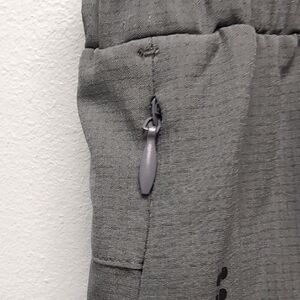 4-Way Stretch Ripstop Fabric Elasticized Hidden Drawstring at Waist Concealed Side Zip Pocket Closures Velcro Closure at Back Pocket Adjustable bungee Cord at Ankle