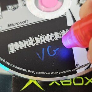 I write VG in invisible UV ink to prevent scammers from swapping disks and returning as shown in photos.