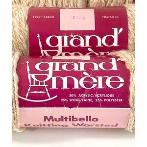 Vintage Grand'Mere Multibello Knitting Worsted 50% acrylic, 25% wool and 25% polyester yarn in a beige and white marbled colour.