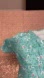 Grandma Halloween costume set with teal dress with floral pattern including wig and accessories.