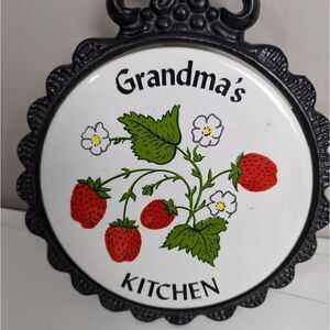 Grandma's kitchen pot holder trover ceramic and iron strawberry vintage triver