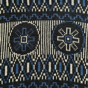 Vintage black, white and blue geometric print Grandpa sweater in a men’s medium. A nostalgic piece of fashion history.