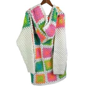 Granny Square Afghan Crochet Cardigan, Hooded Cardigan Handmade Plus Size