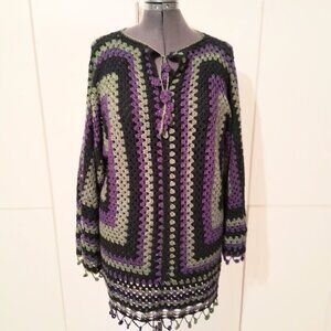 Granny Square Fringe Sweater XL