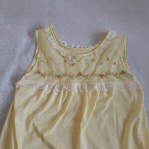 Grants Vintage Women's Size Small Pale Yellow Floral Embroidered Maxi Nightgown
