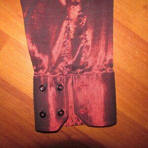 Shiny shimmery deep red (darker than photos, and not orange) men's dress shirt