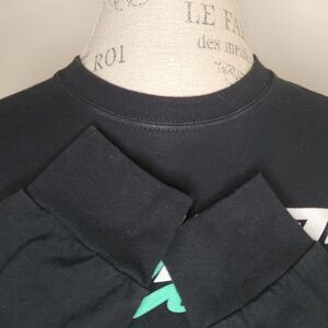 Rolled hem, ombre turquoise flames along sleeves, Excellent Condition, Loose fit Size S, fits more like an M, Pit-18, Length-14, Sleeve-27, sold out online.