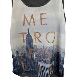 Graphic Glitter Print Scoop Neck Light Sleeveless Casual Tank Top M