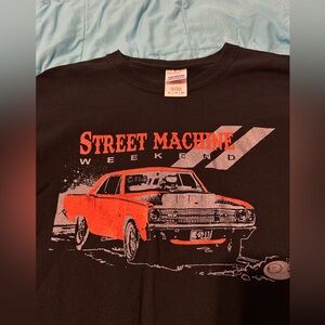 These Gildan brown short sleeve tees offer a stylish and comfortable fit, perfect for everyday wear. Featuring unique vehicle-themed graphics in vibrant orange tones, this shirt stands out with its bold design. Crafted from quality materials, they ensure durability and a classic crew neck style. Street Machine Weekend is a southern Alberta favourite time in July.