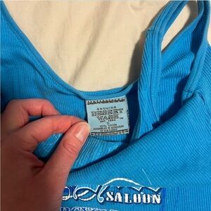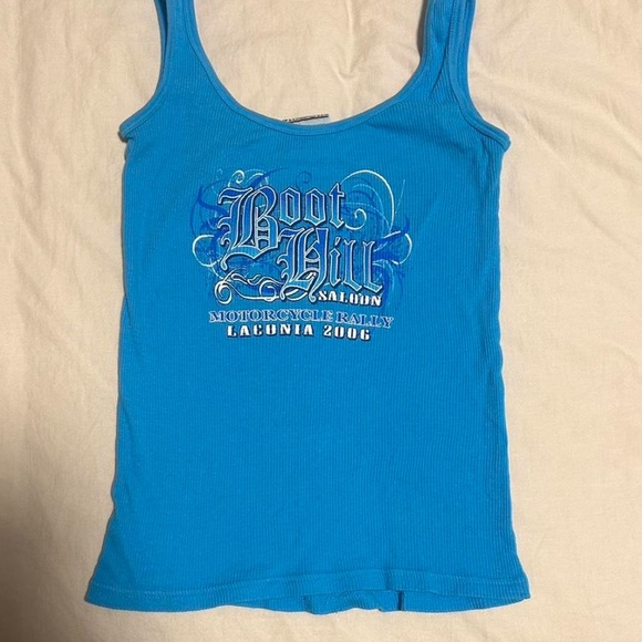 Vibrant blue tank top with Boot Hill graphic. Perfect y2k theme.