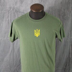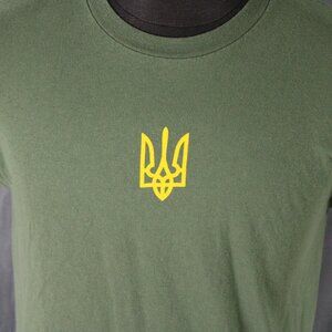 Up for sale is a Ukrainian graphic t-shirt. It has a military green base colour with a yellow Ukrainian trident screened on the chest. What a great shirt do not miss out on it.