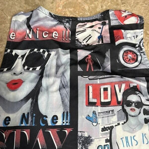 Graphic collage design dress,beads ,pop art design print retro vibe, Sm.,artsy,