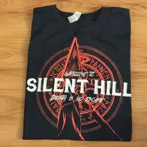 Horror graphic tee, Silent Hill "Welcome to Silent Hill, death is no escape" design. Printed on 100% cotton Gildan tee
