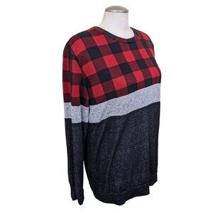 Grateful Hearts Womens Size XL Long Sleeved Buffalo Plaid Top Red Black Soft