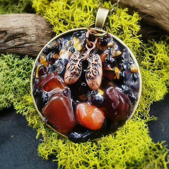 UV resin, polish Agate stones, garnet, tiger eye and obsidian stones. copper charm of Lungs.
