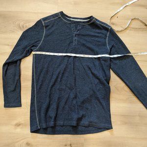 Hi! We sell this shirt. It's in perfect condition. The measurements are in the pictures. It's a slim fit.